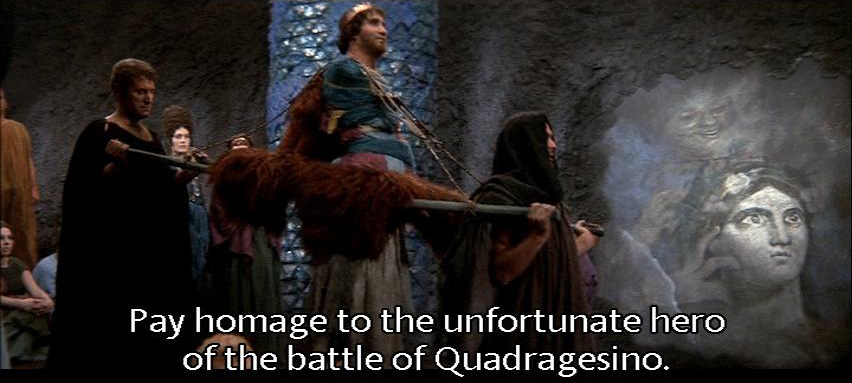 [Man] Pay homage to the unfortunate hero of the battle of Quadragesino.