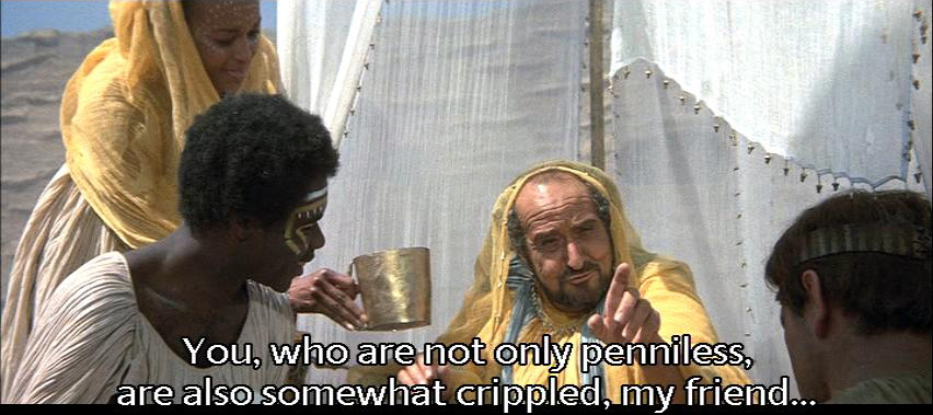 You, who are not only penniless, are also somewhat crippled, my friend.