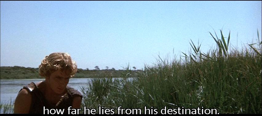 Now you're at the mercy of the fishes and wild beasts ... you, who bragged about your warrior innocence. Come on, mortals, fill yourselves with dreams. Great gods ... how far he lies from his destination. |