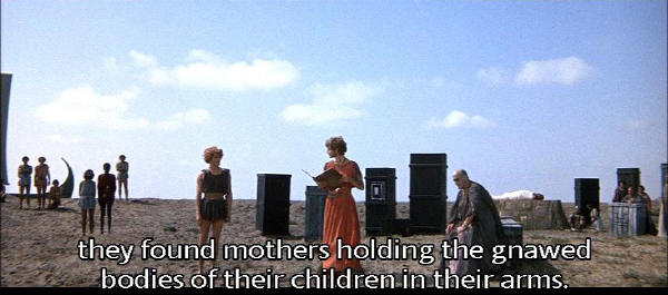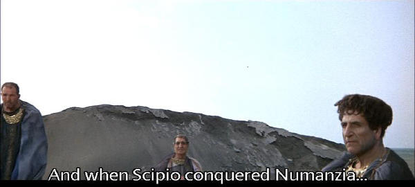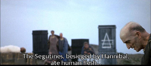 [Man] There are certainly many examples. The Segutines, besieged by Hannibal, ate human flesh ... and expected no inheritance. And when Scipio conquered Numanzia ... they found mothers holding the gnawed bodies of their children in their arms. |