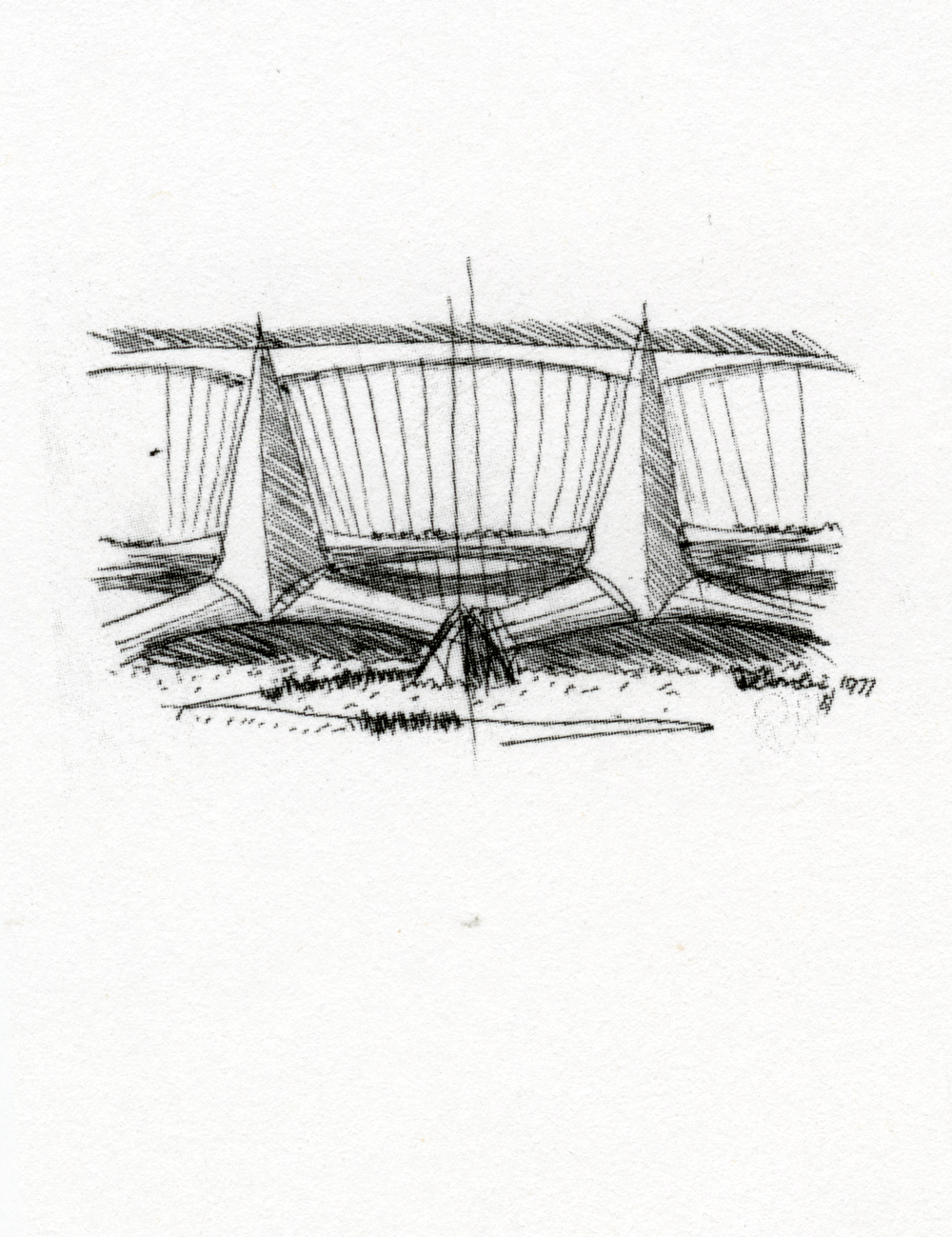 In their specific forms, they both generate from my work. The apse has been part of my architecture from the early 1960s; its original dimensions were 8-10 meters in diameter and is now becoming 50 or more meters in diameter. The Eco-Minutiae entered into my grammar in the late '60s and, by way of stages, are now variations of a pseudo-egg structure from 2 to 20 kilometers in diameter; Eco-Minutiae are space habitats.