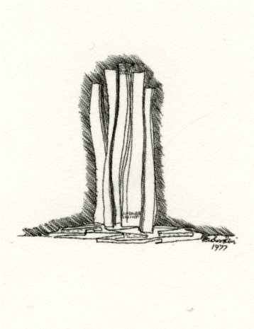A time capsule is embedded in each panel. The time capsule is a brass cylinder containing the "message" of the maker: a quotation, an appeal, a poem, a letter, a prediction, a plea ... On designated occasions one of the events would be the opening and reading of the capsules' contents with the possibility of composing them into a document, a "manifesto," or a book. The building speaks back to its "builders." 4. Ceramics Guild Proposal Employ local materials, such as clay and silt, to establish a ceramic atelier. Recruit local skills for production and management. In addition to using the wheel, the buildup, and the clay-slip-in-plaster-mold technique, we would use the clay-slip/ silt technique we have developed at Cosanti and Arcosanti. Establish Clay-Silt Day connected with the equinox celebrations. 5. Arcology Gallery The Cosanti Foundation has a large archival collection documenting my work, which is capable of filling several museums and galleries. Arcology is the content of the material.