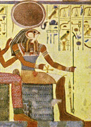 most important Egyptian gods, a sun-god represented as a falcon or with