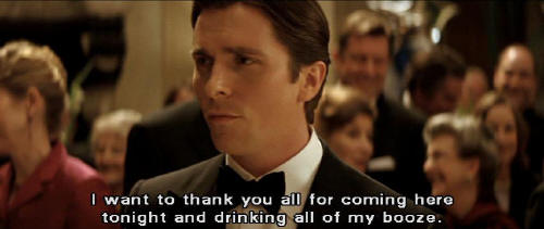 I want to thank you all for coming here tonight and drinking all of my booze.