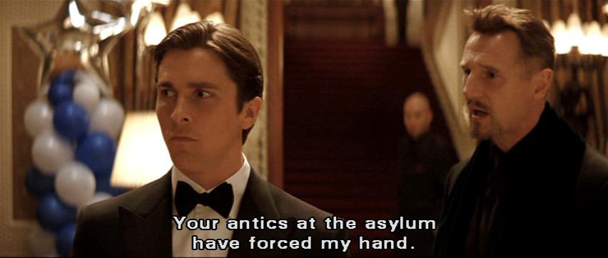 Ra's: Amusing. But pointless. None of these people have long to live. Your antics at the asylum have forced my hand. Bruce: So Crane was working for you. Ra's: His toxin is derived from the organic compound found in our blue flowers. He was able to weaponize it.