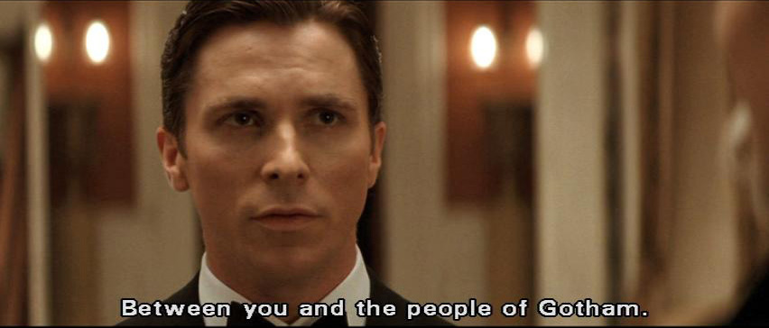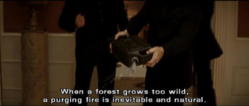 It should be you standing by my side, saving the world. Bruce: I'll be standing where I belong. Between you and the people of Gotham. Ra's: No one can save Gotham. When a forest grows too wild, a purging fire is inevitable and natural. Tomorrow the world will watch in horror as its greatest city destroys itself. The movement back to harmony will be unstoppable this time.