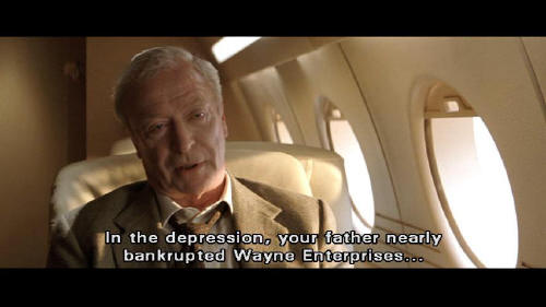 Apart from the mud. Are you coming back to Gotham for long, sir? [Bruce] As long as it takes. I want to show the people ... their city doesn't belong to the criminals and the corrupt. [Alfred] In the depression, your father nearly bankrupted Wayne Enterprises ...