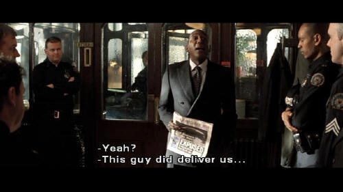 Yeah? [Gordon] This guy did deliver us ... one of the city's biggest crime lords. [Loeb] No one takes the law into their own hands in my city. Understand? [Rachel] No way to bury it now. [Finch] There's still Judge Faden. Masked Vigilante Exposes Drugs Ring; Criime Boss Falcone Left Tied for Police.