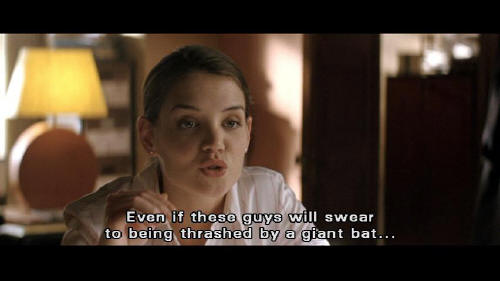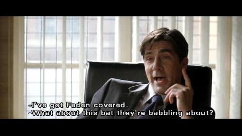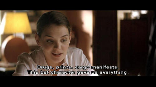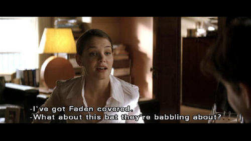 [Rachel] I've got Faden covered. [Finch] What about this bat they're babbling about? [Rachel] Even if these guys will swear to being thrashed by a giant bat ... we've got Falcone at the scene. Drugs, prints, cargo manifests. This bat character gave us everything. [Finch] Okay. Let's do it.