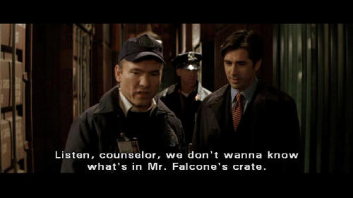 I'm guessing there's something I'm not supposed to find in there. [Guard] Listen, counselor, we don't wanna know what's in Mr. Falcone's crate. [Finch] Things are working a little differently now. Open it up. What the hell is this?