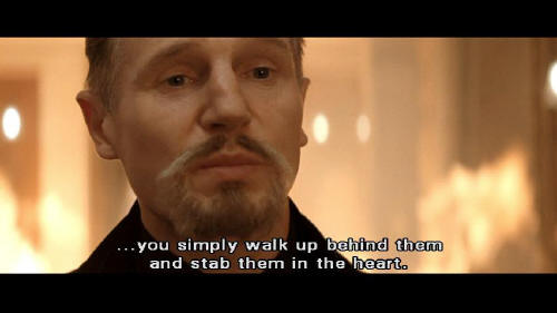 We are back to finish the job. And this time no misguided idealists will get in the way. Like your father, you lack the courage to do all that is necessary. If someone stands in the way of true justice ... you simply walk up behind them and stab them in the heart.