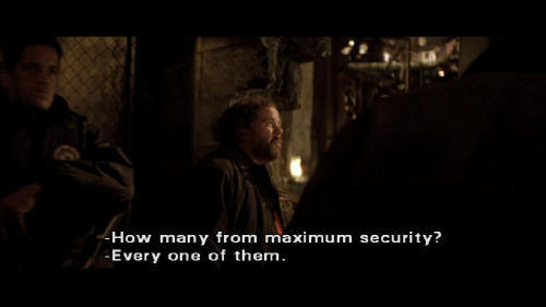 [Gordon] They're all gone? How many from maximum security? [Flass] Every one of them. Serial killers, rapists. [Gordon] Raise the bridges. We don't want any getting off the island. [Flass] Yeah, I'll raise the bridges ...
