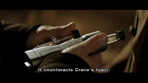 It counteracts Crane's toxin. Hopefully you won't need it. [Gordon] Not unless he's got some way of getting that crap into the air. [Police] All right, last one across. Come on, people, they want this bridge up in no more than three minutes! [Gordon] Better get you off the island before they raise the bridges. Patrolman!