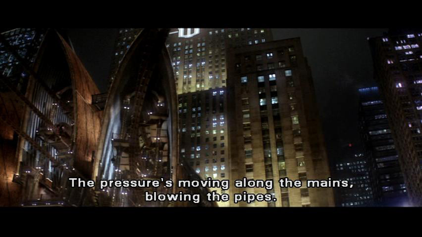 [Water Man] The pressure's moving along the mains, blowing the pipes. If that pressure reaches us ... the water supply right across the whole city is gonna blow!
