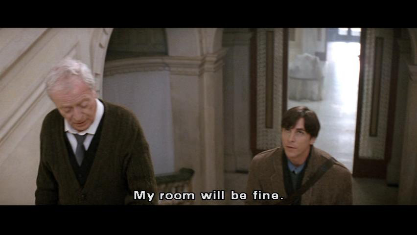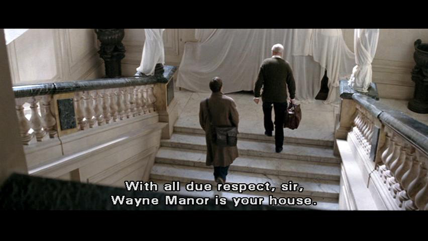 or can I persuade you to stay on for a day or two? [Bruce] I'm not heading back at all. [Alfred] You don't like it there? [Bruce] I like it fine. They just don't feel the same way. [Alfred] I've prepared the master bedroom. [Bruce] No. My room will be fine. [Alfred] With all due respect, sir, Wayne Manor is your house.