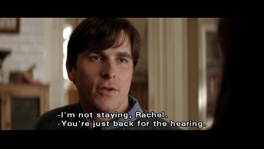 But it's nothing without the people who made it what it was. Now there's only Alfred. [Rachel] And you. [Bruce] I'm not staying, Rachel. [Rachel] You're just back for the hearing. Bruce, I don't suppose there's any way to convince you not to come. [Bruce] Someone at this proceeding ... should stand for my parents.