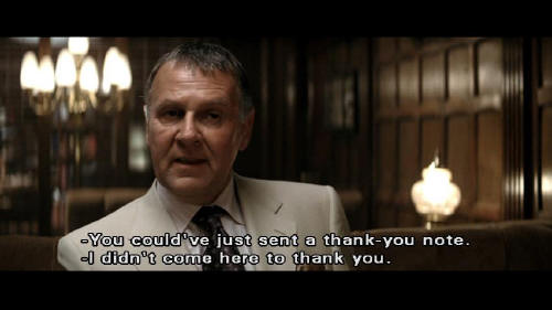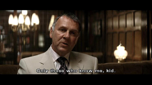 [Falcone] You're taller than you look in the tabloids, Mr. Wayne. No gun? I'm insulted. You could've just sent a thank-you note. [Bruce] I didn't come here to thank you. I came to show you that not everyone in Gotham's afraid of you. [Falcone] Only those who know me, kid.