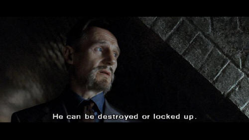 [Henri] The path of a man who shares his hatred of evil ... and wishes to serve true justice. The path of the League of Shadows. [Bruce] You're vigilantes. [Henri] No, no, no. A vigilante is just a man lost in the scramble for his own gratification. He can be destroyed or locked up. But if you make yourself more than just a man ...