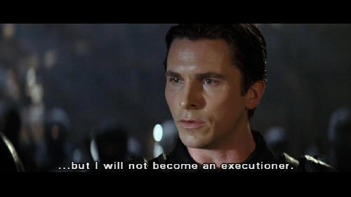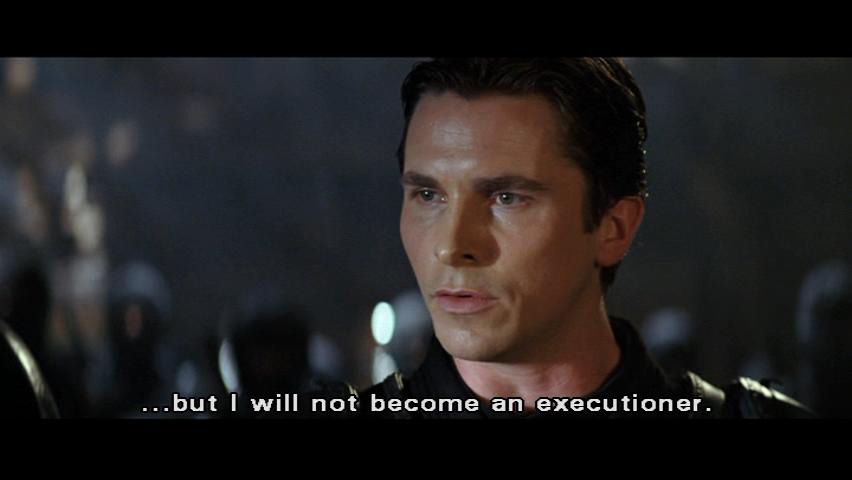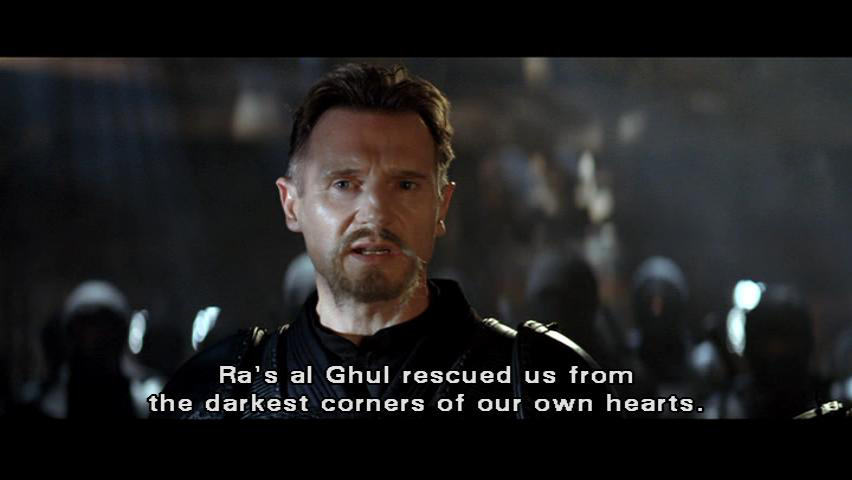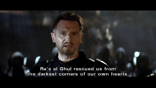 [Bruce] You can't believe in this. [Henri] Ra's al Ghul rescued us from the darkest corners of our own hearts. What he asks in return is the courage to do what is necessary. [Bruce] I will go back to Gotham and I will fight men like this ... but I will not become an executioner. [Henri] Bruce, please. For your own sake, there is no turning back.