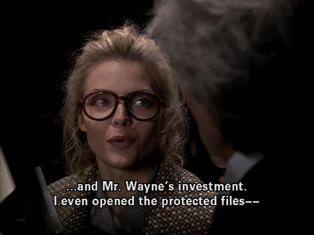 [Selina] ... and Mr. Wayne's investment. I even opened the protected files -- [Shreck] How industrious! [Shreck] How did you open the protected files? [Shreck] May I ask? [Selina] I figured your password was "Geraldo," -- your chihuahua, and it was. [Selina] This is all very interesting, though a bit on the technical side ...