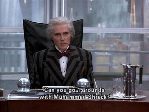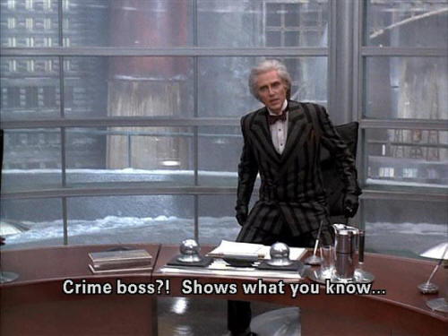 [Shreck] Blue bloods tire easily. [Shreck] Can you go 15 rounds with Muhammad Shreck? [Bruce] I guess we'll find out. [Bruce] Of course, I don't have a crime boss like Cobblepot in my corner. [Shreck] Crime boss?! Shows what you know ... [Shreck] ... Mr. To-the-manor-born-with-a-silver-spoon. [Shreck] Oswald is Gotham's new golden boy. [Shreck] If his parents hadn't 86'd him, you'd have been bunkies at prep school.