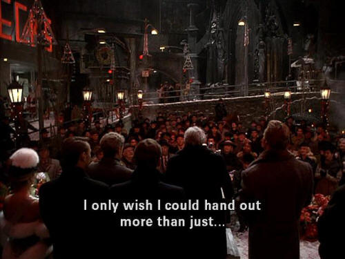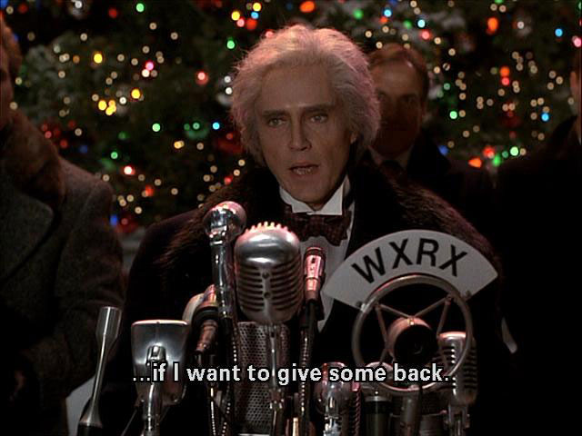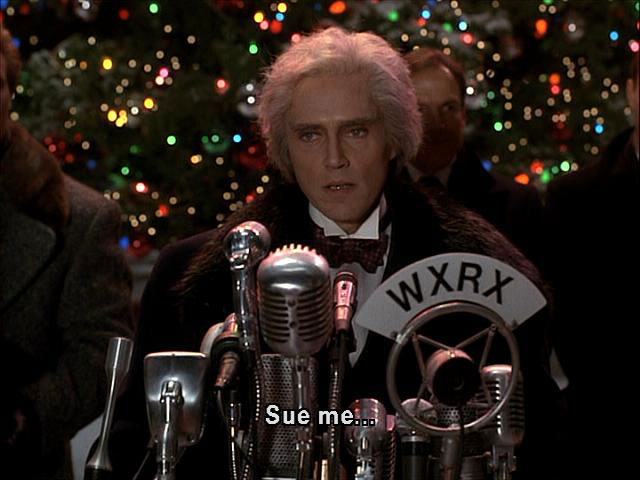 [Mayor] Please welcome Gotham's own Santa Claus, Max Shreck. [Shreck] Santa Claus? [Shreck] Afraid not. [Shreck] I'm just a poor schmo. Got lucky. [Shreck] Sue me ... [Shreck] ... if I want to give some back. [Shreck] I only wish I could hand out more than just ... [Shreck] ... expensive baubles.