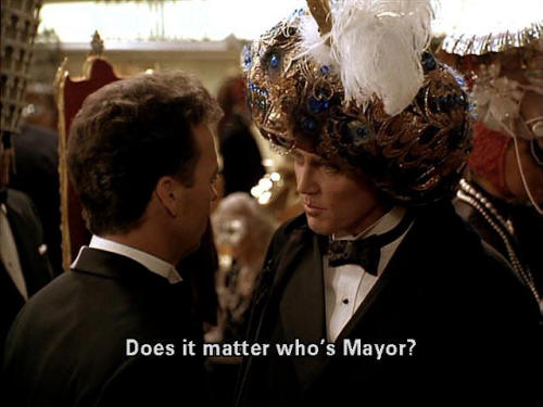 [Shreck] ... and I am its mean, twisted soul. [Shreck] Does it matter who's Mayor? [Bruce] To me. [Shreck] Yawn.