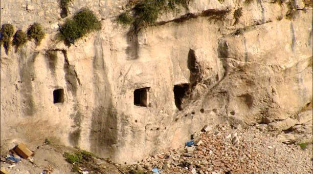 [Israel Finkelstein] During the Iron Age -- the time of this cemetery -- the dead were buried outside of the limits of the city. So by plotting the layout of the cemeteries in Jerusalem, what you get in fact is some sort of a circle around an empty area with no tombs. And that empty area, the negative print with no tombs in the center, is in fact the area of the city in the Iron Age. [Narrator] Localizing these necropoli,