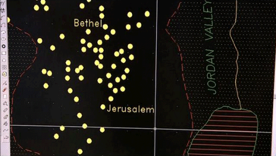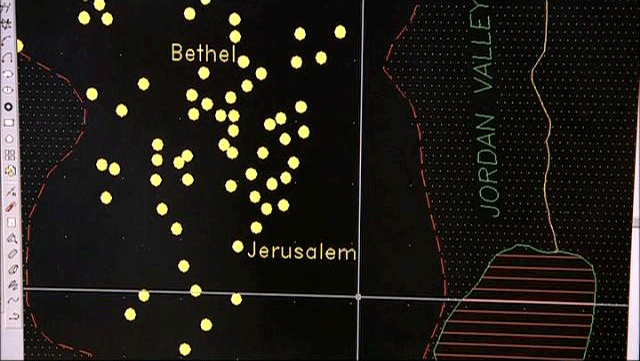 This type of research is based on statistical methodology. The location of remains and concentrations of fragments are transferred onto a map of the area. This allows a reconstruction of how a given territory was occupied, the size of sites, their number, and their evolution over time. In this way, the highlands were inspected with a fine-tooth comb. THE RESULTS WERE AMAZING! Between the 12th and 10th centuries B.C., almost 250 villages were to be found in the highlands of central Canaan. This occurred without the slightest trace of a military conquest. It was a social transformation that was gradual, but nevertheless RADICAL. [Israel Finkelstein] So what we see here is the entire map of all the surveys of many years in the highlands, from south to north.