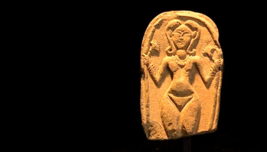 fertility goddesses, companions of gods, and animal incarnations of the divinities. They are to be found both in Canaanite sites from the Bronze Age, and in sites from THE ISRAELITE ERA [?], in the Iron Age. [Amihai Mazar, Hebrew University of Jerusalem] WE HAVE VERY, VERY LITTLE INFORMATION about the religion. One of them I published, I found once in a kibbutz, in Galilee, not far from here -- Kibbutz Shamir. I visited and found on a shelf there a bronze figure of a bull.