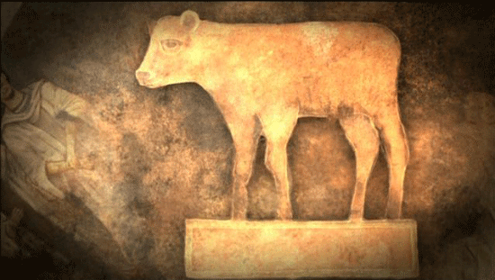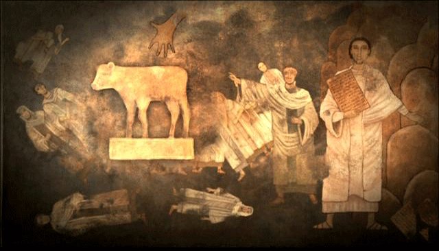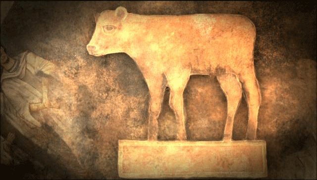 However, THE BIBLE refers to A CONFLICT: the well-known incident of the golden calf that occurred when Moses went up Mt. Sinai TO RECEIVE the Tablets of the Law from Yahweh. While Moses was going up to the mountaintop, the people waiting in the valley made a golden calf. As in other similar passages in the Old Testament, the idol was ULTIMATELY DESTROYED, and YAHWEH TRIUMPHED! What did this conflict between divinities, and this victory of Yahweh represent? WHAT HISTORICAL REALITY DID IT REFLECT? Is there archaeological evidence for the existence of the worship of Yahweh in the kingdom [?] of Judah [?] ? Museum of Israel, Jerusalem