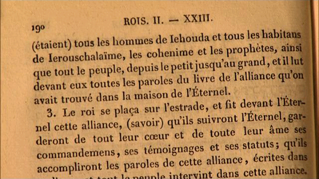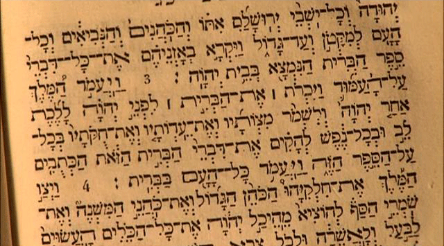 [Narrator] Writing had just expanded beyond the circle of scribes. Of course, public readings of The Book [according to THE BIBLE] discovered in the temple do not PROVE the degree of literacy of the population of Judah. But they do show the function that the written word had attained in 7th century society. [?] In the small state of Judah, under the reign of Josiah, a revolution had been launched [according to THE BIBLE]. [William M. Schneidewind, University of California, Los Angeles] The fact that a sacred, written text emerged from a pastoral, agrarian society is A WATERSHED OF WESTERN CIVILIZATION [???] NEVER BEFORE IN HUMAN HISTORY had societies had sacred texts that were AUTHORITATIVE! Most near eastern civilizations had texts only for governments, for writing. Authority, cultural authority, religious authority was passed from family to family, through oral tradition. It wasn't passed by reading texts or appealing to the authority of text. THE FIRST TIME IN HUMAN HISTORY that we have the authority of human texts is with the Josianic [?] religious reforms where they appeal to the authority of a written text, and have that written text as a binding authority for the entire culture, for all people, as opposed to the authority of the family and the tradition. And this is A WATERSHED OF WESTERN CIVILIZATION. [Israel Finkelstein] In the 7th century B.C., EVERYTHING MERGES. Everything IS RIPE for something new. When we look at the politics of the time, the economy of the time, the social situation in Judah, even the fact that literacy spreads from the center to the countryside to the villages, to the relatively simple people, what we see is a situation in which JUDAH PUTS EVERYTHING IN THE WRITTEN WORD, IN A BOOK. Judah describes its past -- MYTHICAL OR HISTORICAL. It tells us about the present and it gives us THE DREAMS FOR THE FUTURE in the shape of the written word of a book. And this is something new in the history of the human adventure. [?] [Narrator] [According to the Bible], based on this legitimacy, founded on a common law and history, Josiah was able to lead the population in his ambitious plan. But THE DREAM OF A GREAT KINGDOM that would UNITE the people of Israel and Judah for the first time ever was not to be. Josiah died before he was able to accomplish it, killed by Pharaoh Necho II. His end is related IN THE BIBLE in a few lines: "And the worst was yet to come." In 597 B.C., the Babylonians wreaked havoc in the kingdom [?] of Judah for the first time.