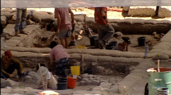 It was the first book ever to be printed. Like all great [?] religious texts, it is a controversial document that has been used by some to justify wars and invasions, and by others to deliver a message of peace. Its wealth [?] is such that it is never far from the minds of our archaeologists. It is not possible to carry out digs in the Holy Land [?] without being conscious of the gravity [?] of the situation. Israel Finkelstein, an archaeologist and Neil Silberman, a historian,