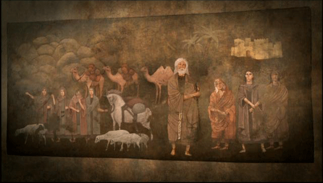 Then suddenly in Chapter 12, we turn to something else: the story of Abraham and thus the origins of the Hebraic people. With this call that Abraham receives from God, the Lord said unto Abraham, "Leave this land and your ancestors, the house of your father, and go to the land that I will show you." [Narrator] The Bible describes the Patriarch Abraham, his wife Sarah, and his nephew Lot leaving their land with their herds, and heading for the promised land, in response to a divine order. The Biblical text describes a veritable migration over thousands of kilometres, from Mesopotamia toward Egypt, and then Canaan. In accordance with the romantic and orientalist conceptions of the period, 20th century researchers imagined Abraham as a bedouin ...