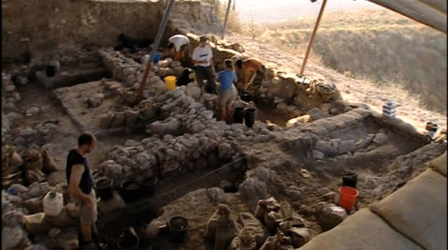 At that time, Megiddo was an important administrative, cultural and economic center with monumental buildings, fortifications, and temples. Far from being an arid landscape suitable only for herders, the strata of the period corresponding to Abraham's migration [?] reveal a city-state of almost 2,000 inhabitants. At that time, Canaan was an economically developed region with a very dense network of city-states. Doubts are raised about the chronology that has been proposed by traditional interpretations of the Bible. But what of the migration [?] itself? Canaan is a buffer zone, situated in between Egypt and Mesopotamia. And these empires have left a number of vestiges. Megiddo is one of the sites where such material abounds. This book of stone will allow us to read the ancient pages of the history of Egypt and Mesopotamia,