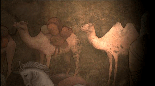 [Israel Finkelstein] What do we know about the domestication of the camel in the Levant region? [Lidar Sapir, Archaeo-Zoologist] According to the archaeological evidence, the camel could not have been domesticated as a beast of burden before the 1st millennium B.C. [Narrator] A second piece of evidence has therefore arisen that contradicts the Biblical texts. The camels of the Near East were not used as working animals before 1,000 B.C. Before this period, we can find no trace or representation of this animal on vases, ceramics, or monumental decors. But our investigation doesn't end there. The presence of camels is linked to the caravan trade from Arabia.