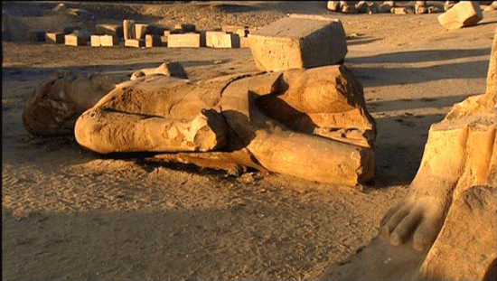 [Narrator] Today, the site has once again become farming land. But archaeologists have succeeded in finding the solution to THE ENIGMA. The City of Ramesses was ABANDONED, just after its construction, when one of the branches of the Nile dried up. A few decades later, its monuments were taken apart, and the stones were re-used in the construction of a new capital -- Tanis -- situated a very dozen kilometres away.
