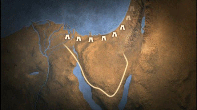 This left them with the southern and more arid route, the one that is most in keeping with the Biblical STORY. The Bible tells how, after having camped in the desert for almost three months, the ISRAELITES RECEIVED THE TEN COMMANDMENTS at Mt. Sinai. They then headed off towards the northeast to the land of Canaan. At that point, the Biblical text tells us they reached the oasis of Kadesh-Barnea, located between the Sinai and Negev deserts. It is here that they spent many years AFTER REFUSING TO ENTER THE HOLY LAND.