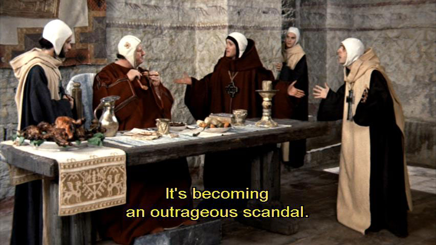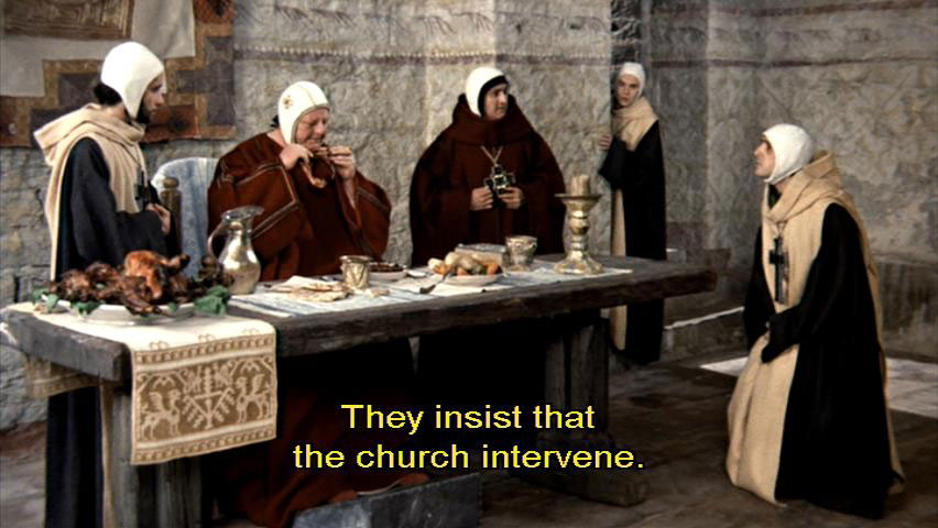 because of some sordid family squabble? What heresy. [Cleric] Your Grace. [Bishop Guido] Oh, tell them I'm out. Say I'm praying or something. [Cleric] But the whole town is down there. [Cleric] They insist that the church intervene. [Cleric] It's becoming an outrageous scandal.