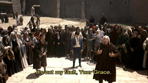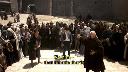 of saying our office. What's the matter with you, man? Have you lost your senses? [Pietro di Bernardone] It's not my fault, Your Grace. It's him -- that lunatic there. [Francesco] Yes ... it's me.