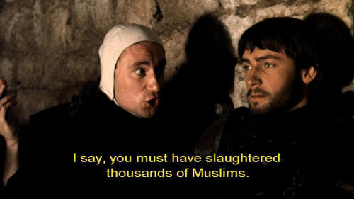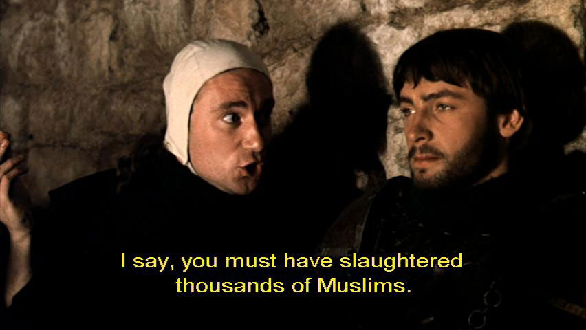 to celebrate your return from the crusade? [Bernardo] Crusades are nothing to sing about, I assure you. [Sylvestro] Oh, come on, Bernardo, you're, you're famous. You're a war hero. I say, you must have slaughtered thousands of Muslims. [Bernardo] What?