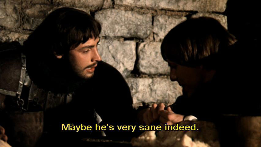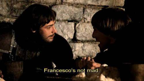 He might need our help, for God's sake. [Paolo] Bernardo, listen to me, not Giocondo, he's drunk. Francesco's not mad. Maybe he's very sane indeed. But you are a hero of the crusades. You can't afford to have your name associated with his. [Bernardo] What?!