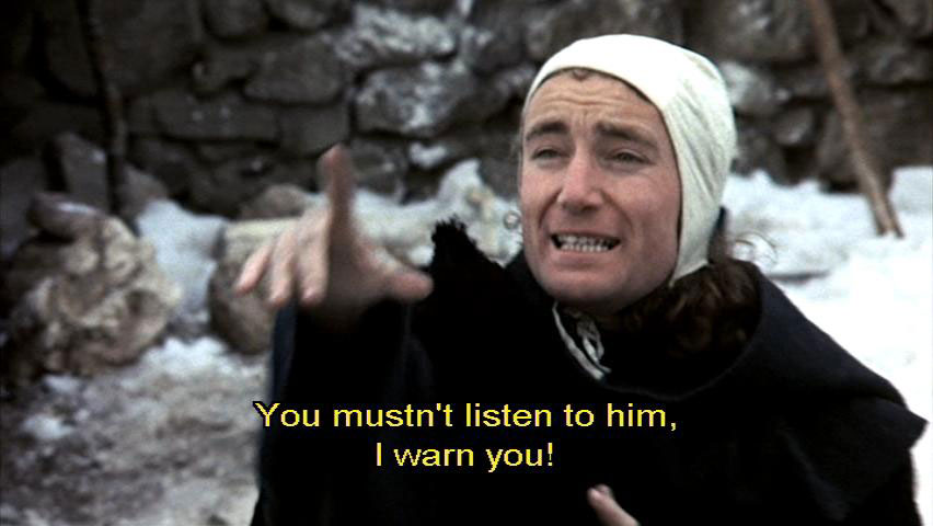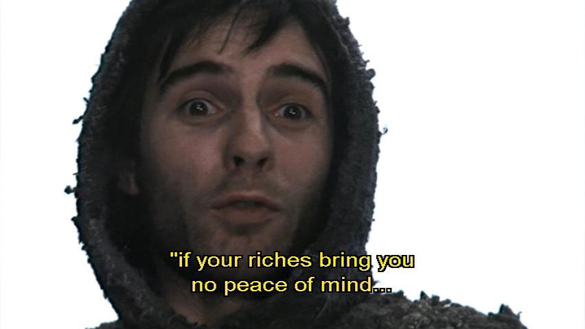 What good is your life to you, if your riches bring you no peace of mind and all your people starve?" [Bernardo] That's what should be said to an emperor. [Sylvestro] You mustn't listen to him, I warn you! If you're going to say things like that,