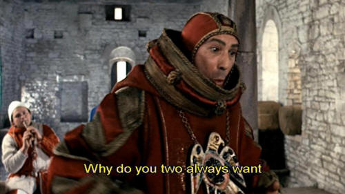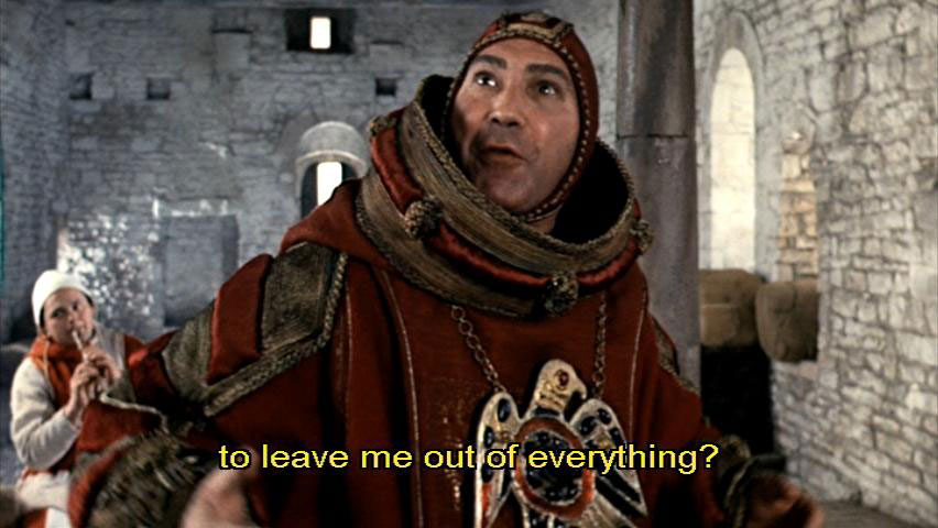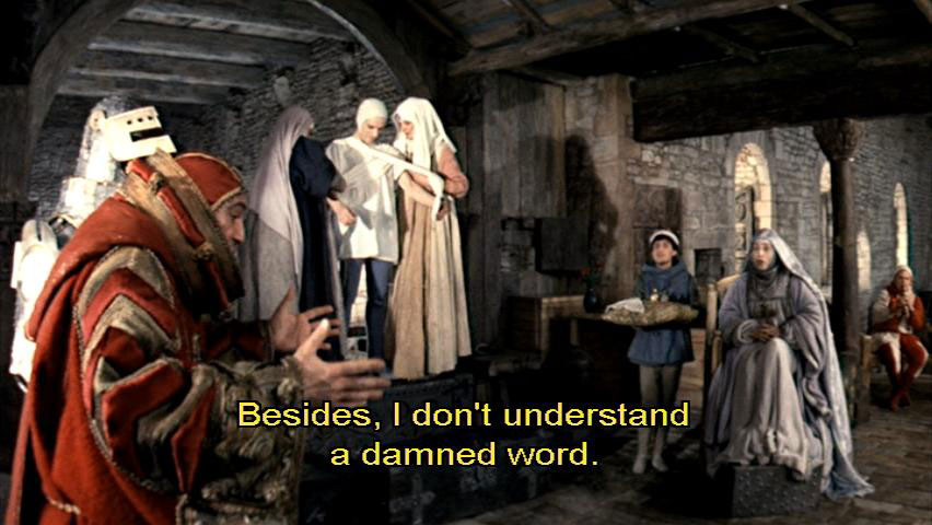The boy's going off to war. Besides, I don't understand a damned word. [Francesco] [Laughs] [Pietro di Bernardone] Why do you two always want to leave me out of everything?