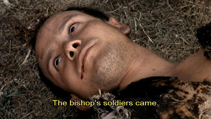 [Woman] The bishop's soldiers came.