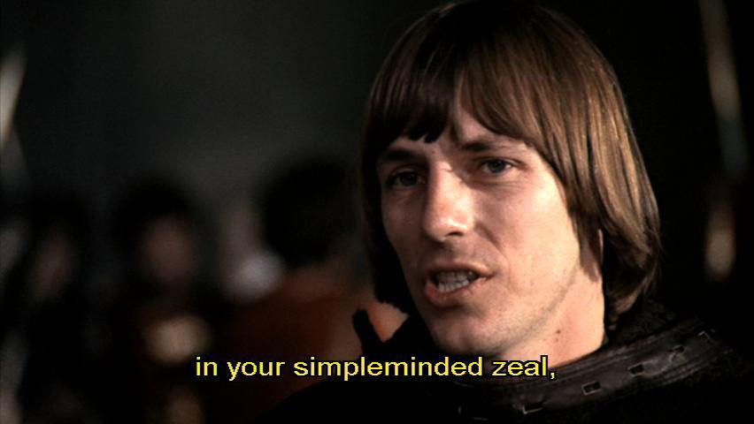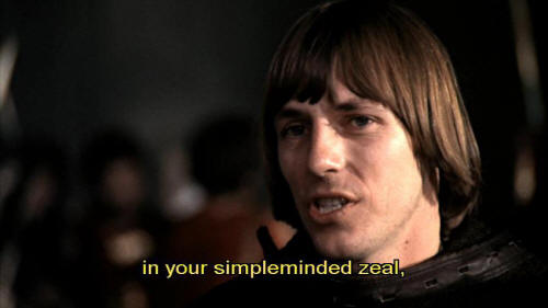 I will do everything in my power to reconcile you with the city. [Bernardo] Paolo, why are you doing all this? [Paolo] Because, in your simpleminded zeal, you could all be burned as heretics.