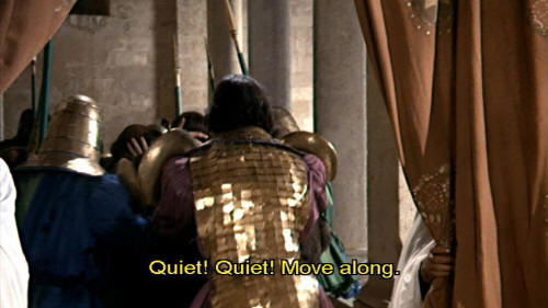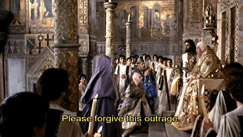 [Paolo] I am with them. [Guard] Then go with them. Quiet! Quiet! Move along. [Cleric] Your Holiness, I am most dreadfully sorry. Please forgive this outrage.