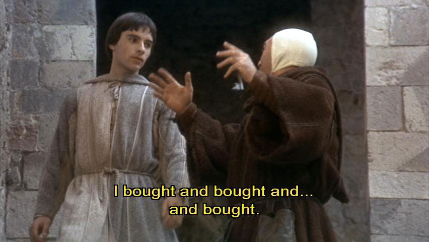 Always has done. [Pietro di Bernardone] Come, come. You shall see. I followed your advice, Francesco, to the very letter. I bought and bought and ... and bought.