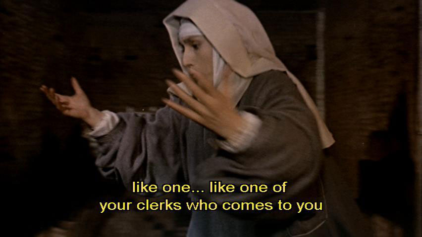 [Pietro di Bernardone] Oh, Jesus, when I think of my own youth, I feel like flaying him alive. [Pica] That's typical of you. Treat him like, like one, like one of your clerks who comes to you whenever you stamp. But, but, but Francesco's not like that, Monsignor. [Pietro di Bernardone] No?