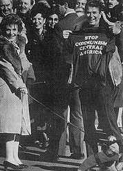 William Casey arriving on Capitol Hill, December 5th 1984, to testify about the CIA-produced manual which advised Nicaraguan contra forces on the "selective use of violence" to "neutralise" Nicaraguan officials. At "The Farm", the CIA's West Point, near Williamsburg in Virginia, young recruits are trained in such paramilitary activities as infiltration, heavy weapons and demolitions. One former officer who was trained in special operations wrote: "Some of the training was conventional. But then we moved up to the CIA's demolition training HQ. And it was here that we received training in tactics which hardly conformed to the Geneva Convention. The array of outlawed weaponry with which we were familiarised included bullets that explode on impact, silencer-equipped machine guns, home-made explosives and self-made napalm for stickier and hotter Molotov cocktails.. And there was a diabolical invention that might be called a mini-cannon. It was constructed of a concave piece of steel fitted into the top of a can filled with a plastic explosive. When it was detonated, the tremendous heat of friction of the steel turning inside out made the steel piece a white-hot projectile. There were a number of uses for it, one of which was demonstrated to us using an old army school bus. It was fastened to the gasoline tank in such a fashion that the incendiary projectile would rupture the tank and fling flaming gasoline the length of the bus interior, incinerating anyone inside. It was my lot to show the rest of the class how easily it could be done. It worked, my God how it worked. I stood there watching the flames consume the bus. It was, I guess, the moment of truth. What did a busload of burning people have to do with freedom? What right had I, in the name of democracy and the CIA, to decide that random victims should die? The intellectual game was over. I had to leave."